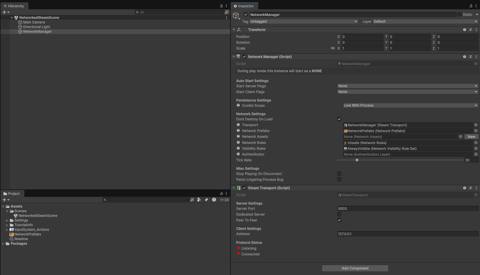 Debug.LogError("SteamTransport missing on NetworkManager", this);