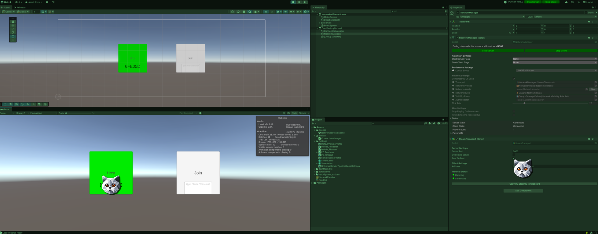So you want to make a multiplayer Steam game, and you're looking to get started with PurrNet? You've come to the right place! My name is [Judsin](https://github.com/Spell-Bound-Studios), and I'm going to show you how to connect with your friends over Steam so that you can get started testing your game today! I will do my best to be extremely clear and provide you with screenshots every step of the way. Before we begin, let's clarify what this document is and is not below: